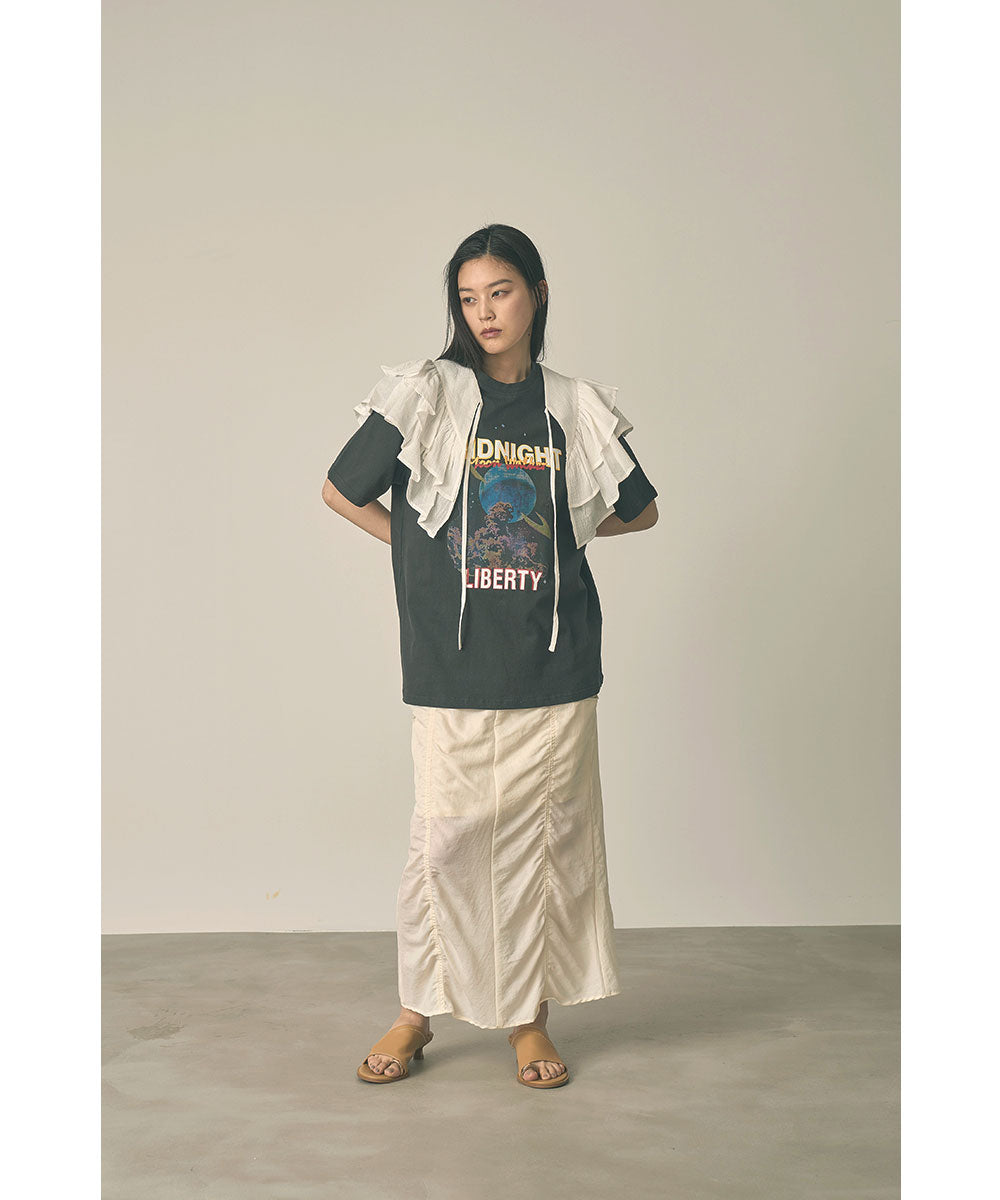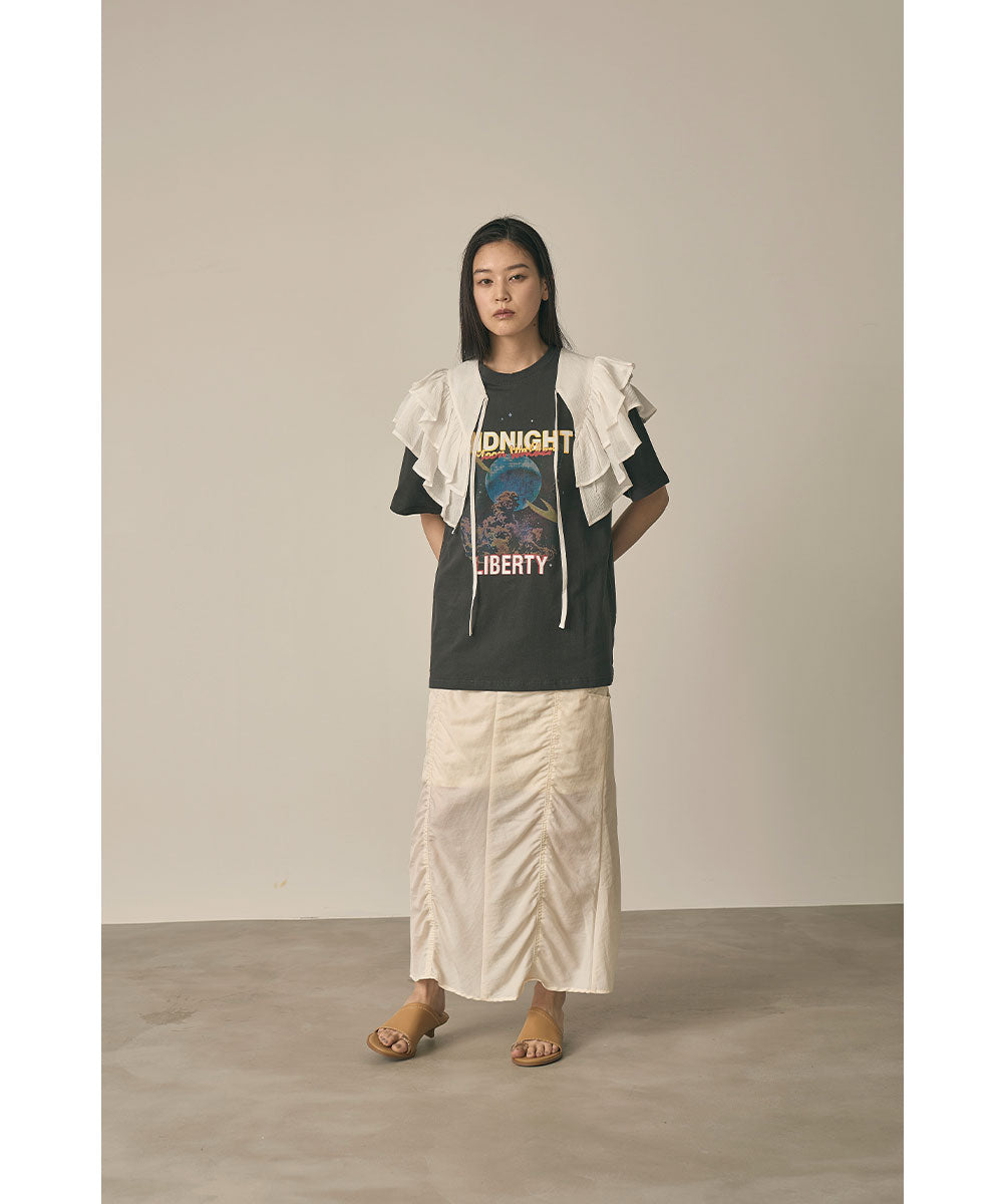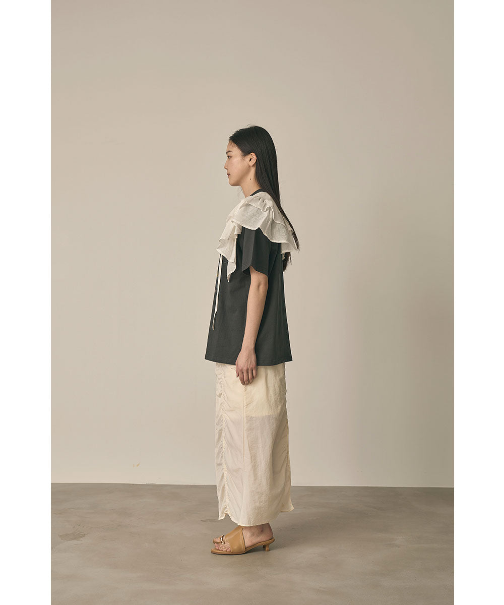 シアー感のある素材を選んでボリュームはあるのに抜け感のある雰囲気に。