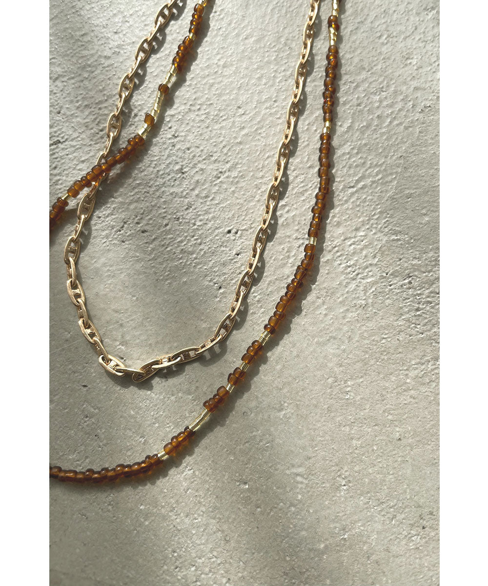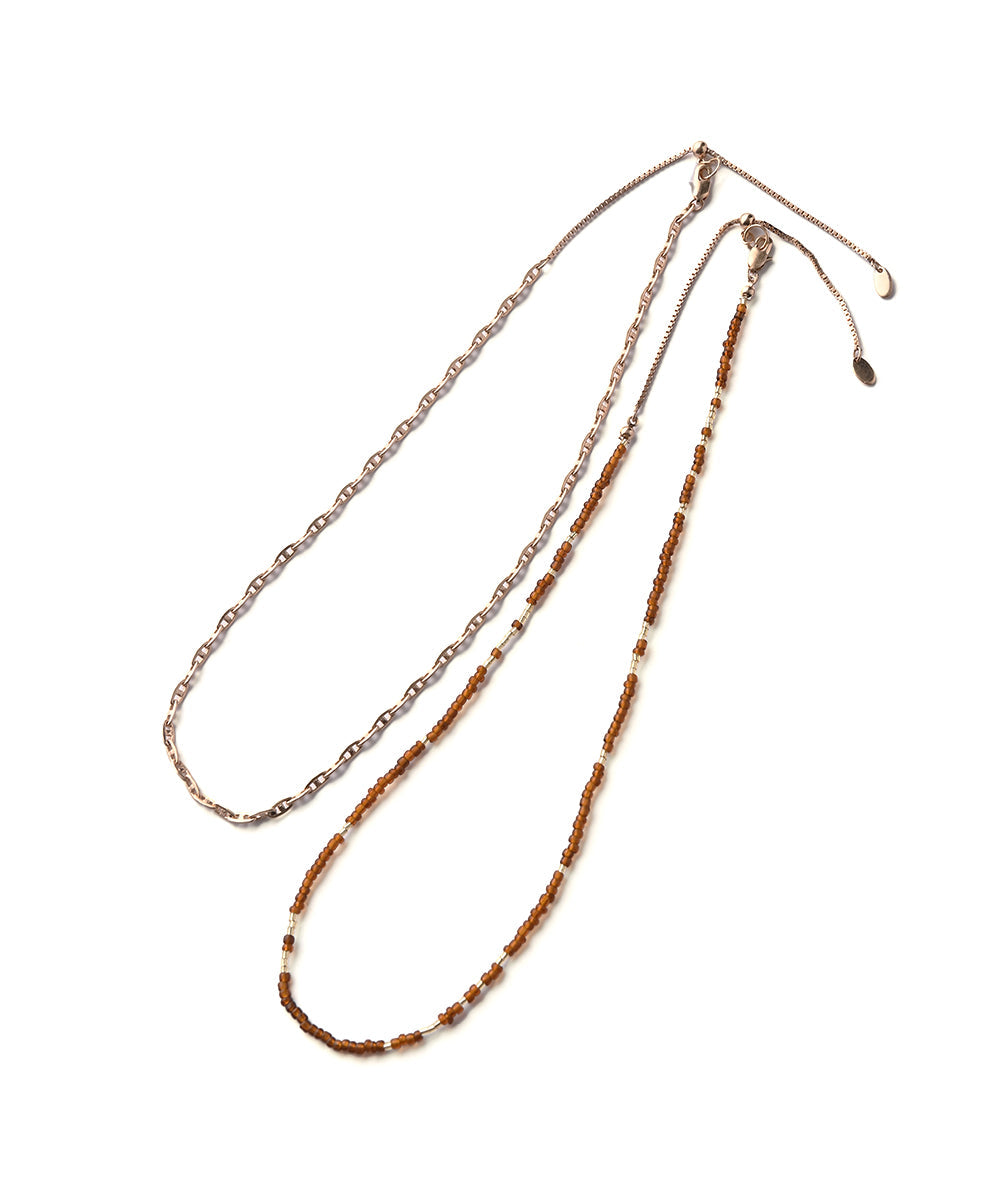 繊細なビーズネックレスと程よい存在感のチェーンネックレスがセットに。