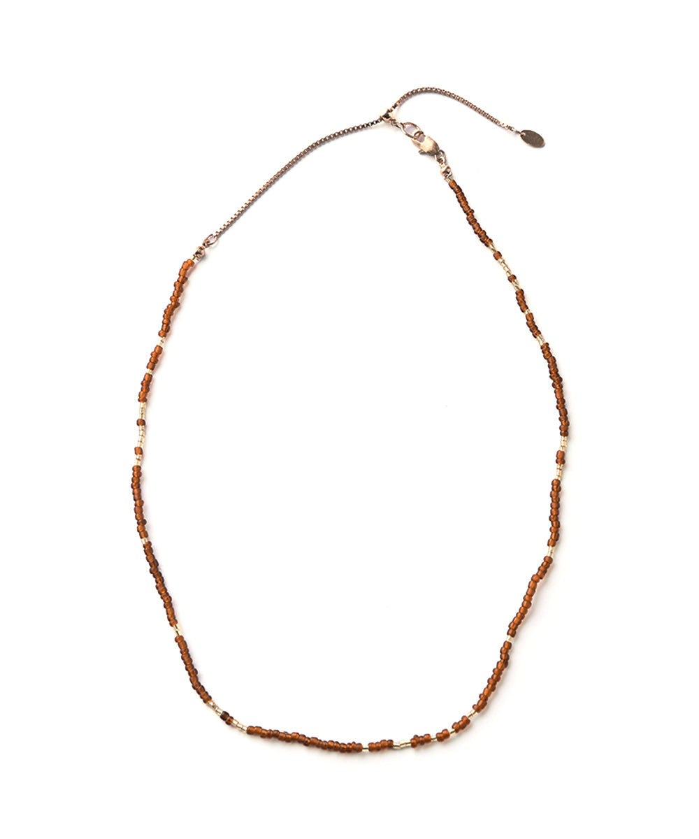 ブラウン系ビーズの深みがスタイリングに落ち着きをプラス。