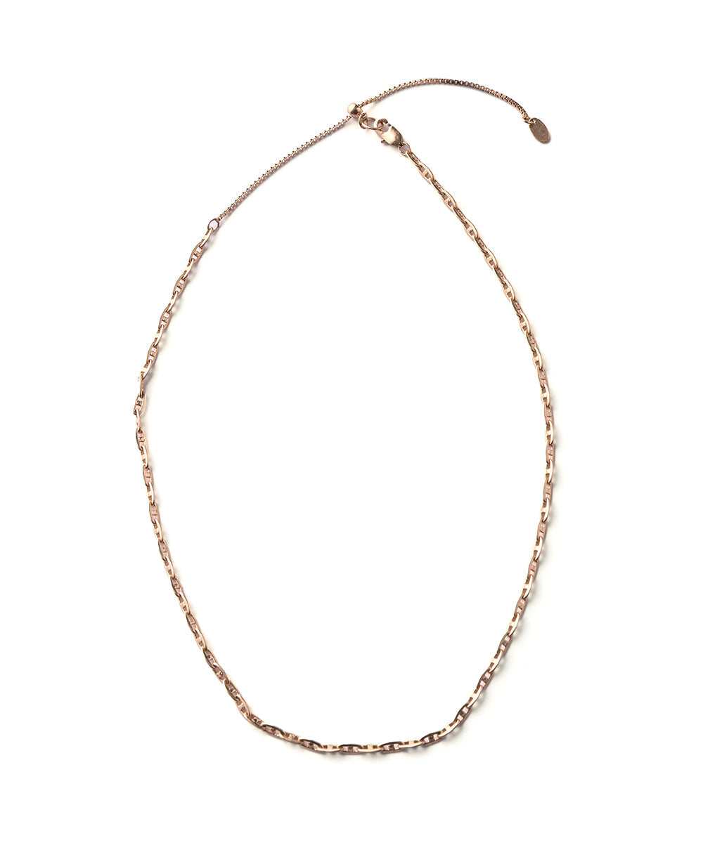 チェーンは角度によってさりげない表情を見せ、重ねづけに奥行きを。