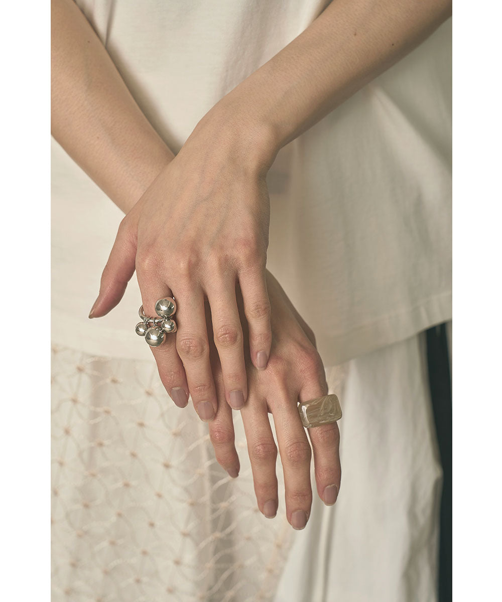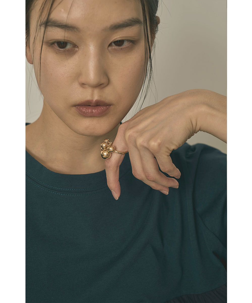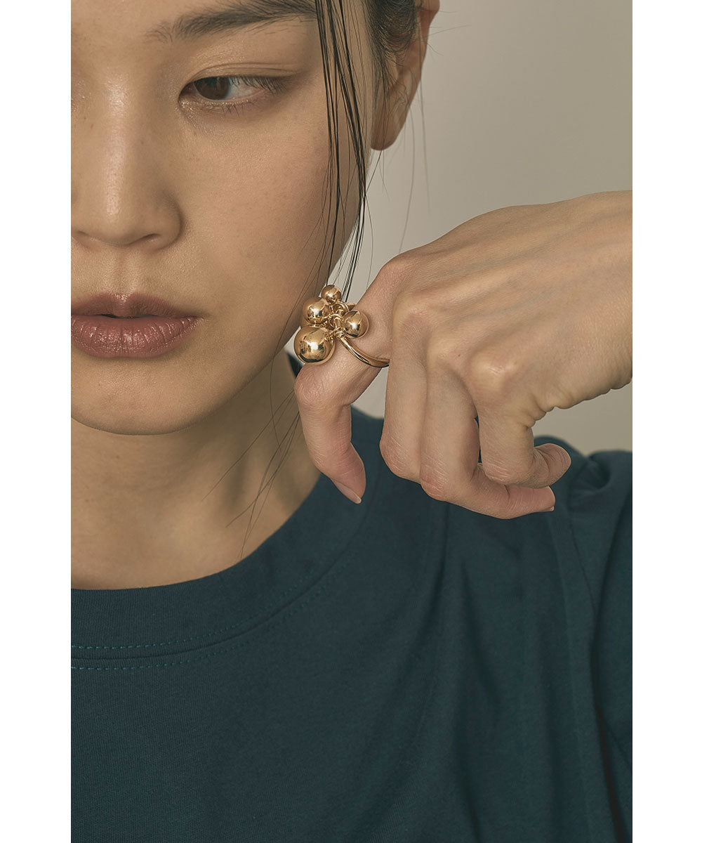 泡のように丸いパーツを組み合わせた、立体感のあるメタルリング。
