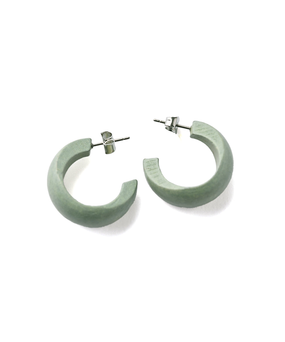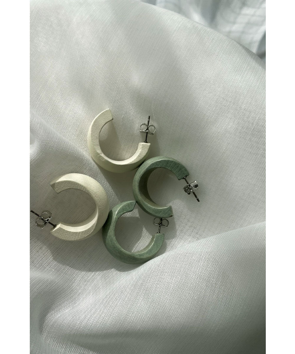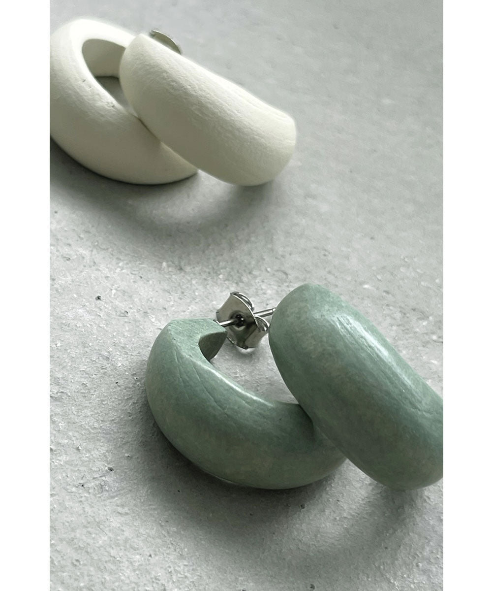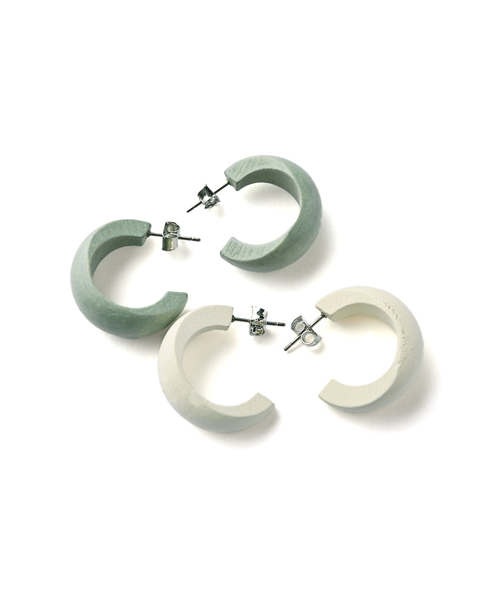 ウッド素材でとても軽いつけ心地のフープピアス。温かみのあるウッド。さわやかなカラーリングで涼しげな耳元に。