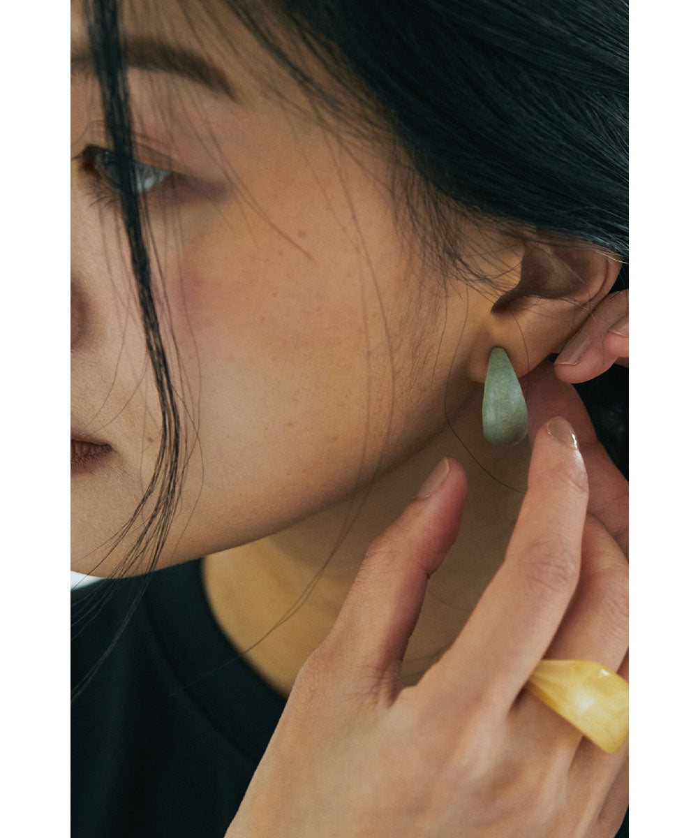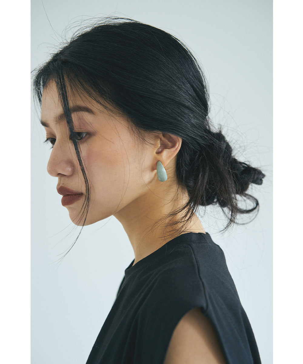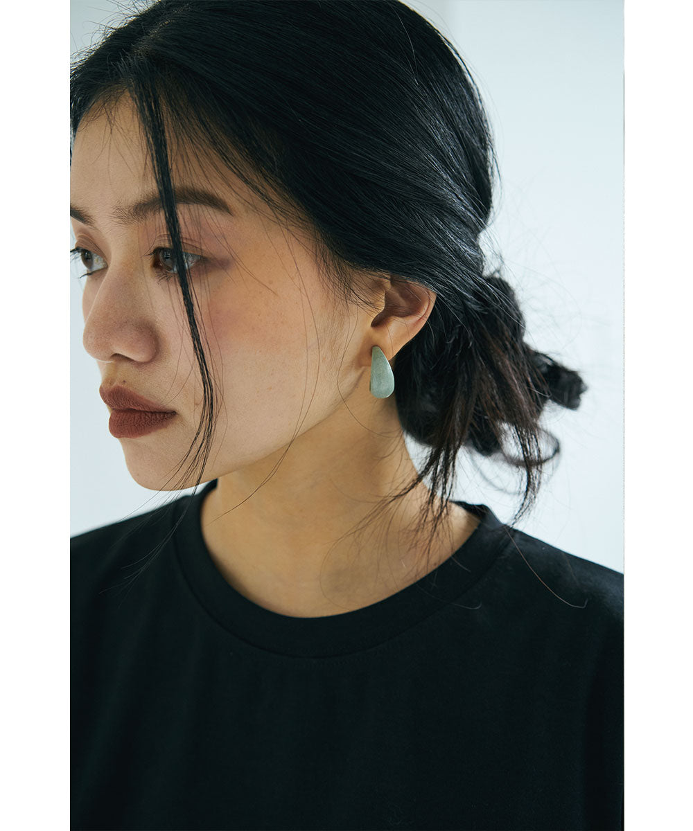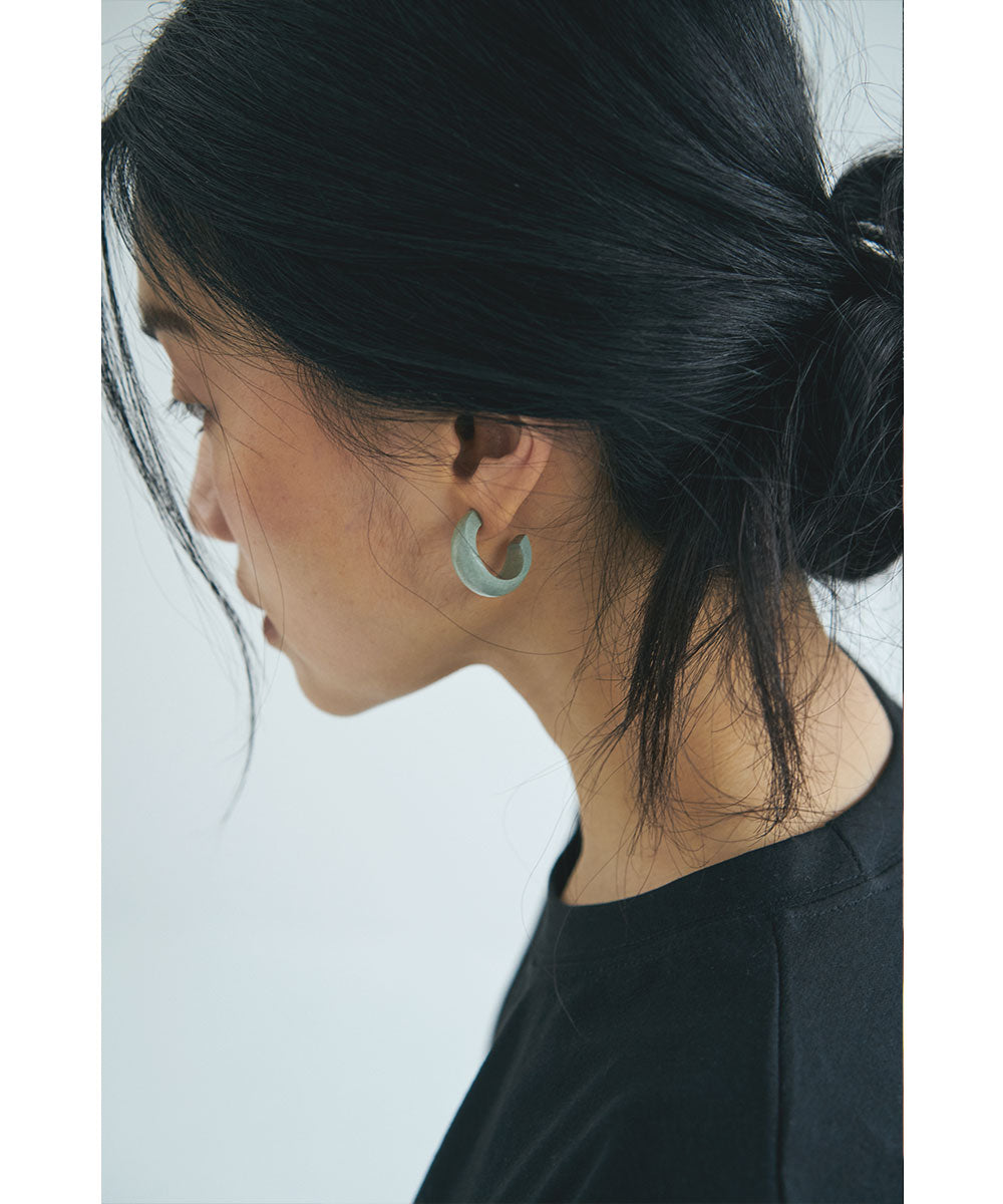 ウッド素材でとても軽いつけ心地のフープピアス。温かみのあるウッド。さわやかなカラーリングで涼しげな耳元に。