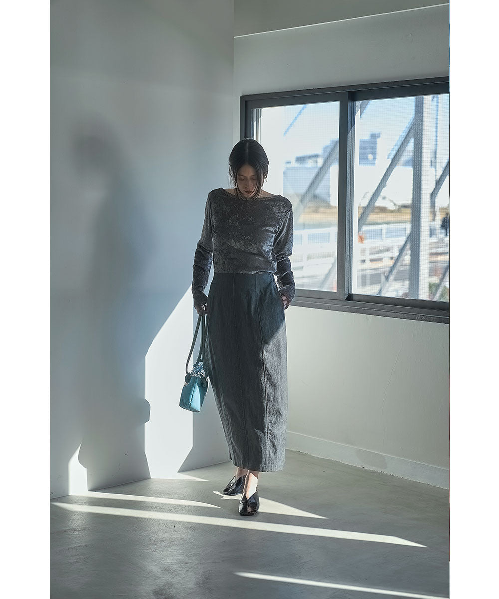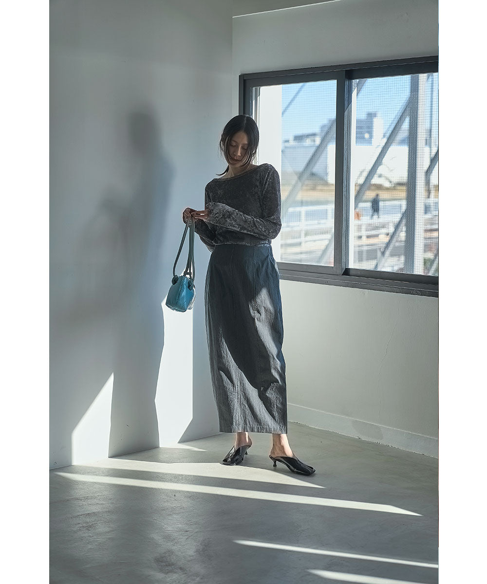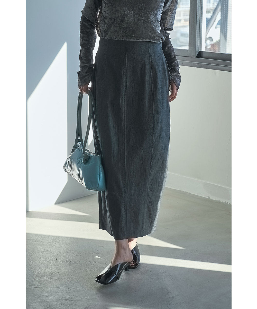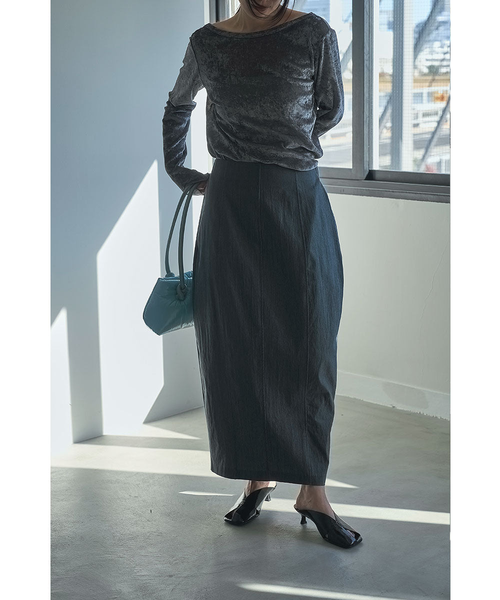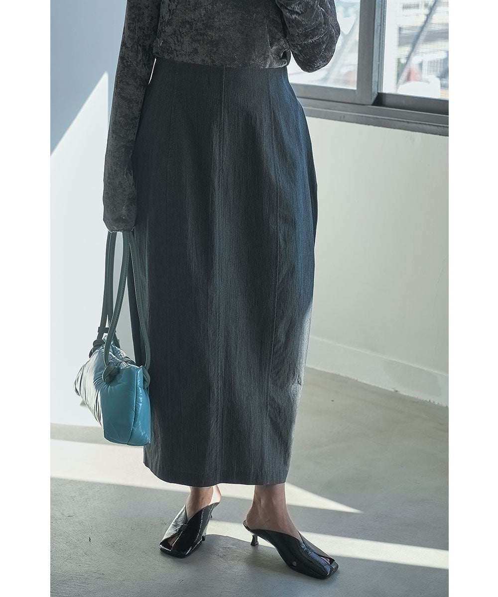 緩やかなカーブを描くコクーンシルエットが特徴のロングスカート。